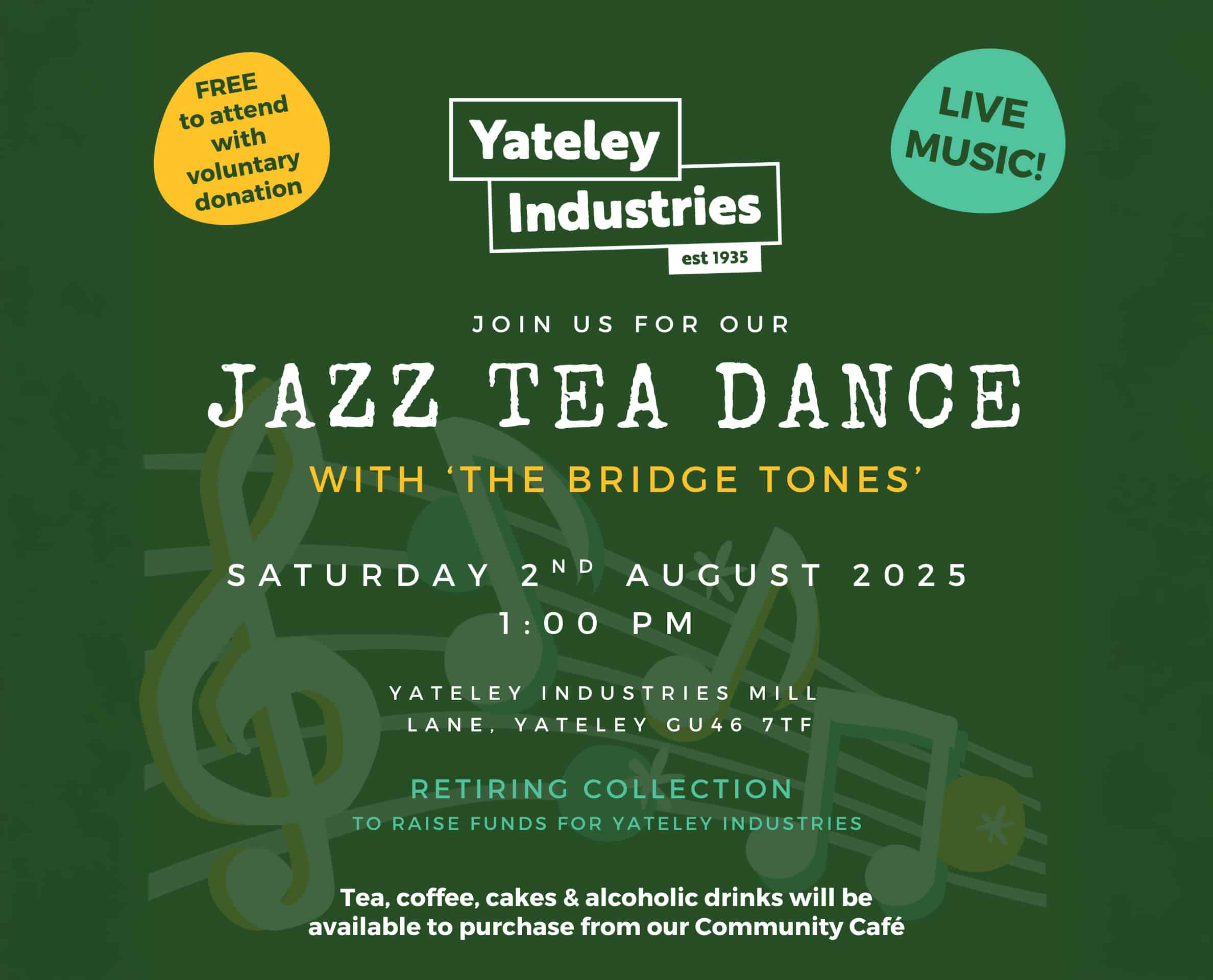 There will be a retiring collection to raise funds for Yateley Industries.
